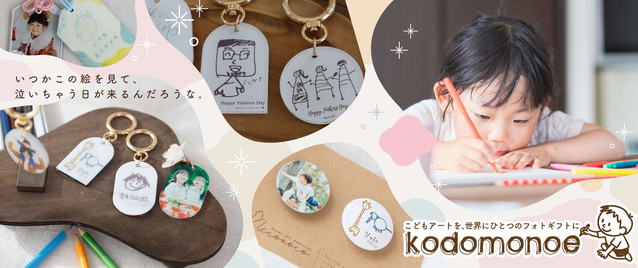 【ギフトキャンペーン】 母の日ギフト(〜5/31) 詳細はこちら→https://necco.theshop.jp/p/00007 ┈┈┈┈┈┈┈┈┈┈┈┈┈ 想いと一緒に成長を贈ろう。 子供の絵は日々変わる。 今しか書けないうちの子アートを人気のフォトチャームにしていつでも一緒に。 neconocoオリジナルPhotoPrintCharm \ KODOMONOE / お子様が描いた、世界で一番心のこもったイラスト。 その宝物を、いつでも持ち歩けるキーホルダーに。 忙しい毎日の中で、ふと見るたびに癒される。 そんな特別な「わが子アート」を、丁寧にカタチにしてお届けします。 敬老の日に お孫さんの絵に「ありがとう」の文字で感動ギフトに。 お子様からパパ・ママへサプライズプレゼントにも。 ┈┈┈┈┈┈┈┈┈┈┈┈┈ ■ サイズ 丸型S :直径40mm 丸型M:直径50mm 窓型S :約35×50mm 窓型M:約50×70mm ラウンドM:約35×57mm ラウンドL :約45×75mm ■ 素 材 アクリル(厚さ3mm)+UVプリント+キーチャーム ⸻ 【 お届けまでの流れ 】 1. ご希望のサイズ・オプションを選んで購入 2. お子様の絵を撮影 →「お入れする文字、イラスト・文字のカラー番号、文字文字のデザイン番号」と一緒に、 LINEまたはメールで送信 3. 確認画像で仕上がりイメージチェック (通常2〜4営業日程度でデザイナーよりお送りします) 4. ご確認後に、必要な調整・修正点をお知らせください 写真の差し替え、文字内容の変更も可能。 (通常1〜3回程度のやりとりが必要です) 5. OK後に制作スタート! (デザイン確定後、通常5営業日程度で発送) 【 お写真の送付先 】 neconocoのLINEまたはメールに「ご購入サイト(BASE)・ご注文者様のお名前」を記載しお送りください。 高解像度のお写真をお選びいただくと仕上がりが綺麗です。 LINE登録はこちらから 「 https://lin.ee/gNpeVX9 」 LINE ID 「 @616sxoli 」 入稿用メールアドレス 「 [email protected] 」 ⸻ 【 キレイに仕上げるためのポイント 】 ・「 白い紙 」に太めの「 黒いペン 」で、余白を持って描く ・明るい場所で、真上から撮影する ※上記の条件でなくても作成可能です。お気軽にご相談ください。 ⸻ 【 各オプションについて 】 「コットンフラワー」 シンプルの中にも高級感と、ナチュラルな素材感を組み合わせました。 お好みのカラーをお選びください。 「 裏面コーティング 」 印刷面をよりきれいに保ちます。 剥がれに強い素材を使っていますが、商品の性質上強い摩擦があると剥がれてしまいますので、剥がれが心配な場合は、こちらのオプションをご利用ください。(素材:UVレジン) 「 ギフトパッケージ 」 特別なギフトパッケージもご用意しました。クラフト素材のジップバックで特別なフォトギフトに。 ご自宅用はもちろん、贈り物にもおすすめです。 ⸻ 【 スムーズなお取引とご満足いただける仕上がりのために 】 ・ご購入の際の注意点▶︎▶︎▶︎ https://necco.theshop.jp/p/00002 ・発送・配送に関する注意点▶︎▶︎▶︎ https://necco.theshop.jp/p/00014 ご注文前に必ずご確認ください。 ⸻ ▷neconoco KODOMONOE collection https://necco.theshop.jp/p/00015 ▷Instagram https://www.instagram.com/neconoco/