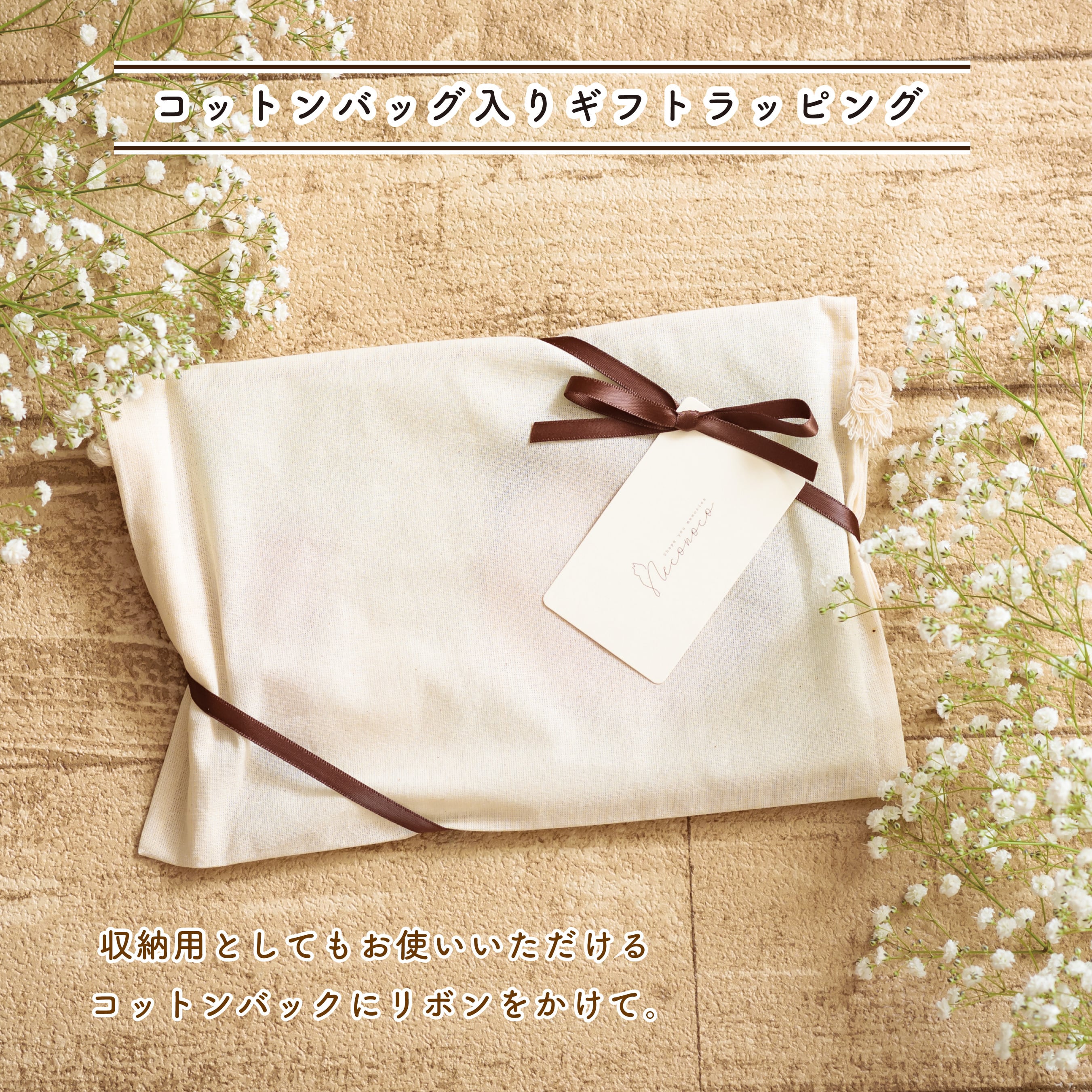 instacubeのギフトラッピングは、収納用としてもお使いいただけるコットンバッグにリボンをかけて。