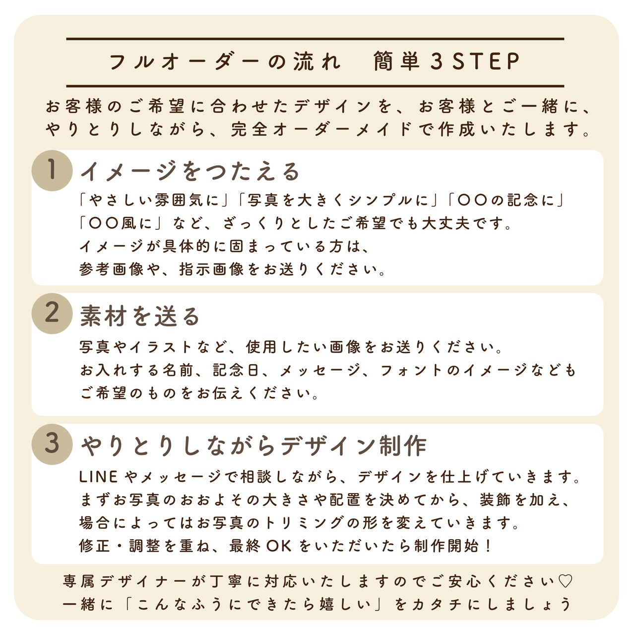 (オーダーの流れはとっても簡単。詳細は商品画像にてcheck!)