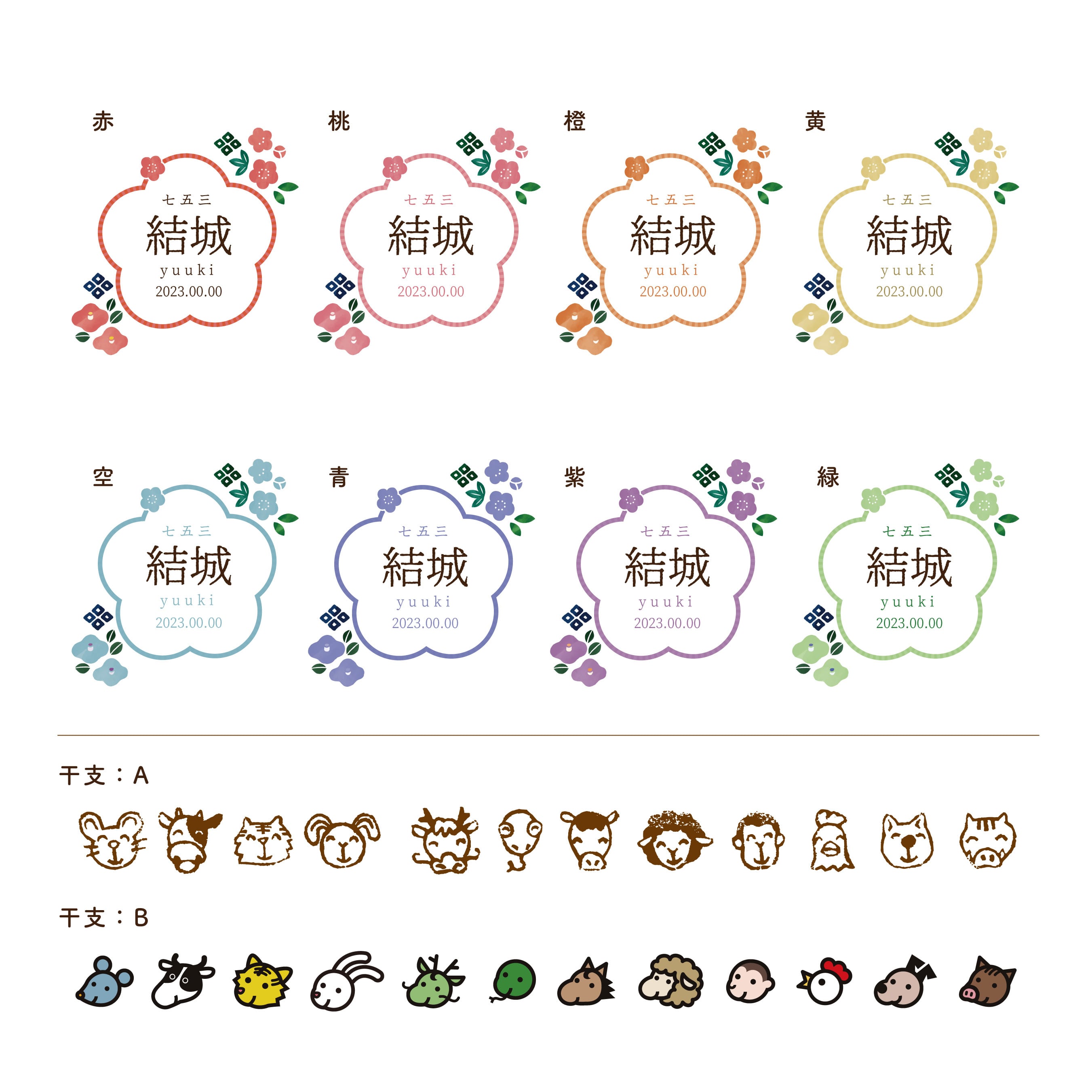 お好みの干支モチーフに加えて、カラーバリエーションもお選びいただけます。