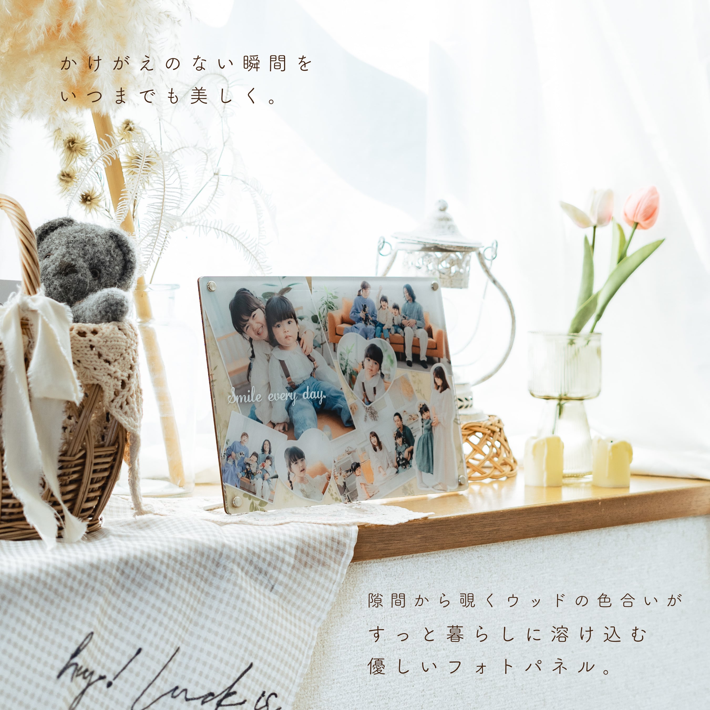 アクリルと木材を組み合わせた、あたたかさを感じるフォトパネルです。